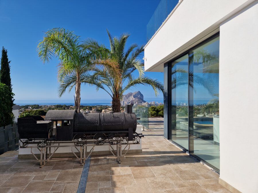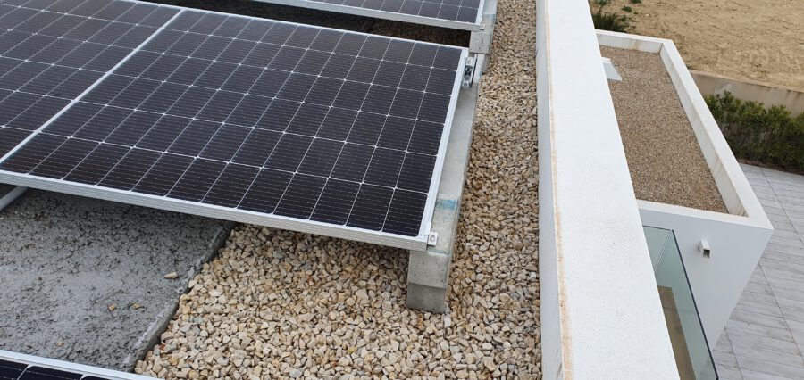 1️⃣ CONCEPT: Newly built luxury home with spectacular views of the Peñón de Ifach. The flat roof is covered with gravel, featuring obstacles but enough space for the photovoltaic installation.