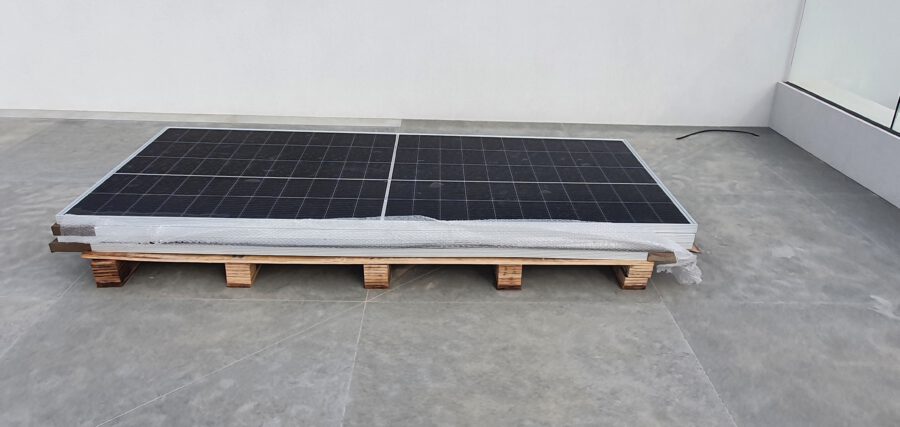 2️⃣ DESARROLLO: Equipada con autoconsumo fotovoltaico de 8,250kWp con paneles Jinko de 550Wp sobre estructura posada de hormigón y acero, a 15º de inclinación sur, parapetada tras el muro de la fachada posterior de la vivienda. Un inversor Huawei trifásico de 8kW y 15 optimizadores, que mejoran el rendimiento de los paneles, completan la instalación.