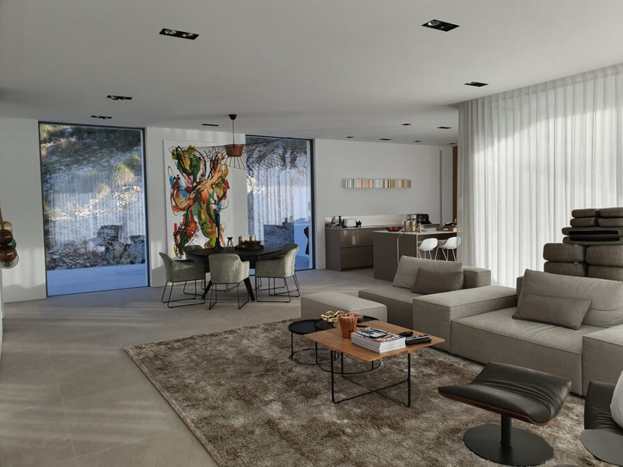 1️⃣ CONCEPTO: Vivienda de diseño que nace desde el interior de la montaña y se funde con ella, diseñada como un balcón con extraordinarias vistas a la costa de Altea y Benidorm.