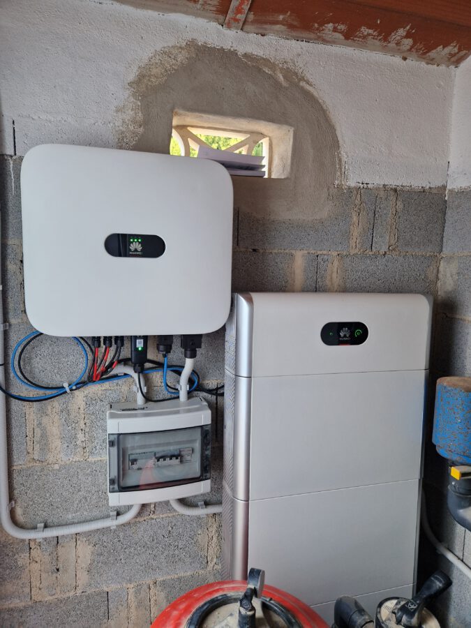 2️⃣ DESARROLLO: Finalmente equipada con un sistema de autoconsumo fotovoltaico de 11,000kWp con paneles Seraphim de 550Wp sobre estructura de hormigón, homologada y posada en el suelo, con orientación totalmente al sur, inversor Huawei de 10kW y 15kWh en baterías de la misma marca, modelo Luna.