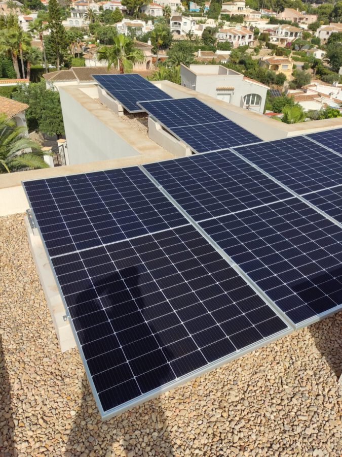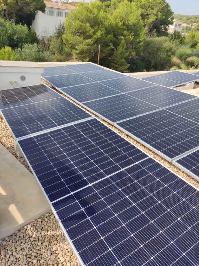 2️⃣ DESARROLLO: Equipada con un sistema de autoconsumo fotovoltaico de 5,500kWp con paneles Seraphim de 550Wp sobre estructura de hormigón, homologada y posada en el suelo de la cubierta. Inversor de la marca Huawei. Todos los paneles llevan optimizadores de la misma marca.