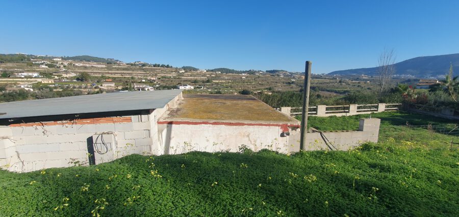 > BONUS: El tejado de teja árabe está protegido por la normativa local y, adicionalmente, por el hecho de que la vivienda se encuentra en suelo rústico, por lo que no podemos instalar sobre él los paneles solares. Por ello se busca en la parcela un espacio donde colocarlos y se encuentra justo detrás de los establos. Antes de ejecutar la instalación, se tiene que limpiar, allanar y compactar el terreno y abrir zanjas para el cableado.