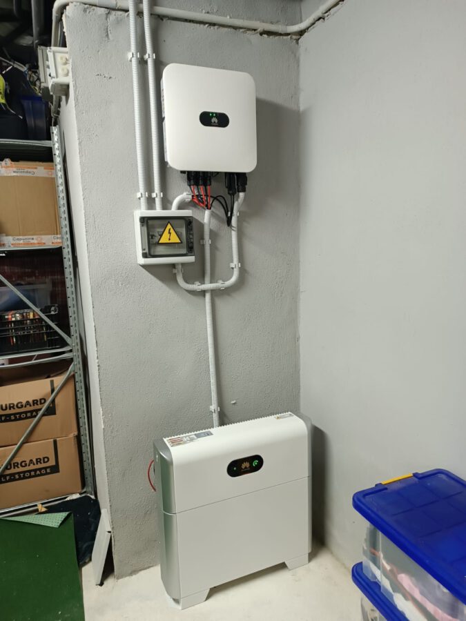 2️⃣ DESARROLLO: Equipada con un sistema de autoconsumo fotovoltaico de 6,48kWp, con paneles Seraphim de 540Wp sobre estructura de hormigón de 20º posada en suelo nivelado. Con un inversor trifásico híbrido de la marca Huawei y 5kWh en baterías de la misma marca, modelo Luna.
