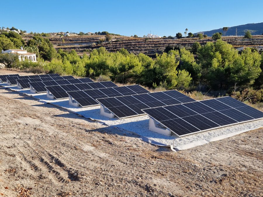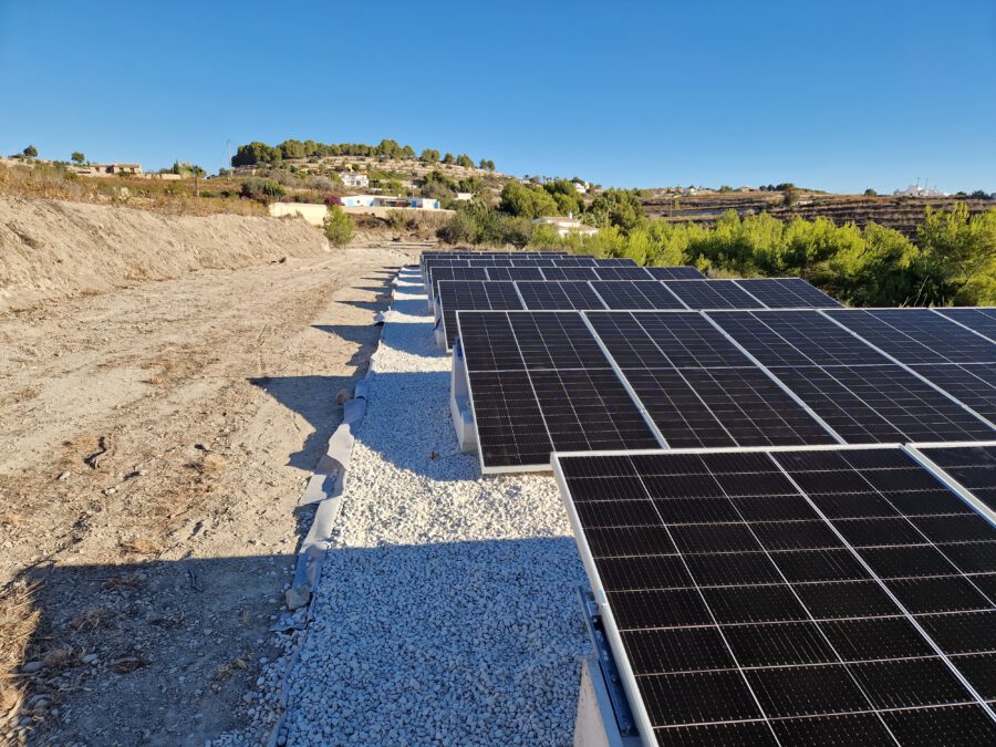 > BONUS: El tejado de teja árabe no se puede tocar, por deseo expreso de la propiedad. Adicionalmente la vivienda se encuentra en suelo rústico, por lo que, de cualquier forma, no podemos instalar sobre él los paneles solares porque nos lo impide la normativa. Buscamos en la parcela un espacio donde colocarlos y lo encontramos en un extremo de la misma, alejados de la vista. Antes de ejecutar la instalación, se tiene que limpiar, allanar y compactar el terreno y abrir zanjas para el cableado.