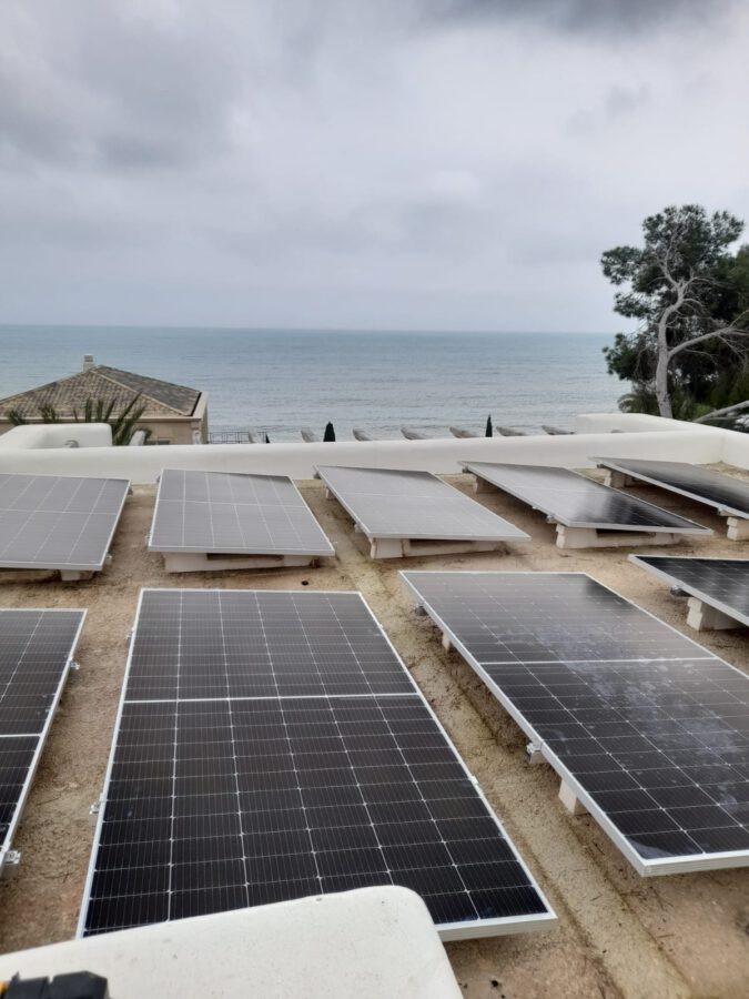 2️⃣ DESARROLLO: Equipada con un sistema de autoconsumo fotovoltaico de, ni más ni menos, que 28,620kWp, con paneles Jinko de 540Wp sobre estructura de hormigón de 5º, homologada y posada en el suelo de la cubierta, dos inversores híbridos de la marca Huawei de 10 y 15kW y hasta 30kWh de almacenamiento en baterías Huawei Luna. Todos los paneles llevan optimizadores.